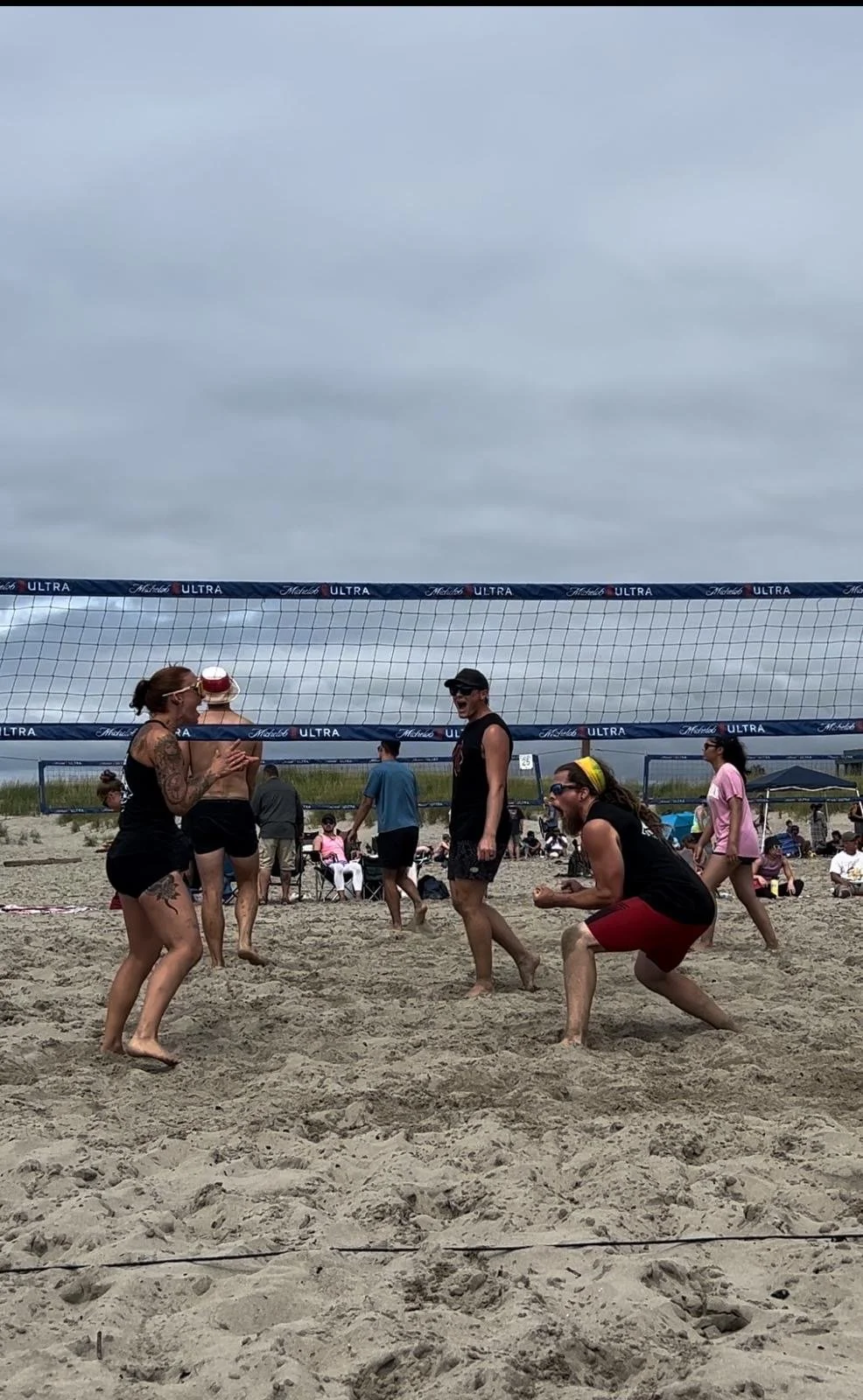 I can’t write about Seaside without mentioning Dynamic Drywall and all the energy and investment they have poured into this journey. They have been beyond generous and have proved to be our #1 fans during this tournament. Thank you so much for all you did to support Sav and I through this tournament. Not only did they sponsor Sav and I to play doubles, they also sponsored our quads team where we teamed up with Ian and Kassidy Hull from McMinnville… We came onto the court to battle our hearts out, and battle we did! We ended up taking 2nd in our pool and Seeding 19th out of 64 for Bracket play. In our first bracket play match, we were fired up. We came into it a little too relaxed after seeing our opponents seeding, but after they won the first match, we cranked it up and brought them to a 3rd. In the third match, we held nothing back and put on a match like nothing I have ever played before. I was fired up, WE were fired up. We were all jiving with each other in rhythm. My mind was laser focused on the game, I heard people cheering and trying to get my attention, but all my focus went to the inside of those thin blue boundary lines marking out court 39… I paid no mind to the outside distraction… It felt as though I knew where the ball was going before it even moved, I was reading the court in a way I have never experienced, which allowed me to dig up straight butter for Ian who was setting and blocking for us. Words could never describe the way that high-level, high-focussed playing feels, but the only thing that topped that feeling in the 3rd match was the screams from the four of us as we put away the ball for our final point needed to send the other team packing!!! The feeling of winning is an interesting feeling, it’s addicting, it’s pure joy, it takes dedication and perseverance to win, and the feeling of winning comes with a large amount of satisfaction…….. and then it’s over, and we look into the eyes of the next team. Do we have what it takes to beat them? do they look stronger? do they look tougher? Do I need to change my tactics because of who we are playing?… I shut it all out! those are questions and volleyball play does not involve questions, it involves execution from a body that is being directed by a laser focussed mind… I must let the questions move on and focus… let my ears hear all the sounds, let my nose smell all the smells, let my eyes see all the sights, let my tongue taste all the tastes, let my skin feel all the feels. My senses are open but my mind is focussed on the game ahead; it pays no extra energy analyzing those sensory inputs happening off the court… no questions, no thoughts; those both only take place in the mind, NOT on the court, so I let them swirl away with the sound of the sea and I tune into the rhythmic play of the game. This next game was another game for the books. I could write about it, but words will never explain it. We took it to a third and ended up losing by 2 points… our day was done, our game was bested, and we were disappointed… and then it’s over, and we look into the eyes of those that helped us get there, The eyes of my wife and two daughters who drove from Portland just to watch me for the day, the eyes of Sav’s family who helped us get here and have been cheering us on since the beginning, and as we look into these eyes that look back at us full of love and support, we remember that we are immersed in a game, the sting of the loss is quickly replaced by the renewed love of the game that penetrates the heart and soul of all who join in… a love that gets swirled around the salty sea air on the beach of Seaside…